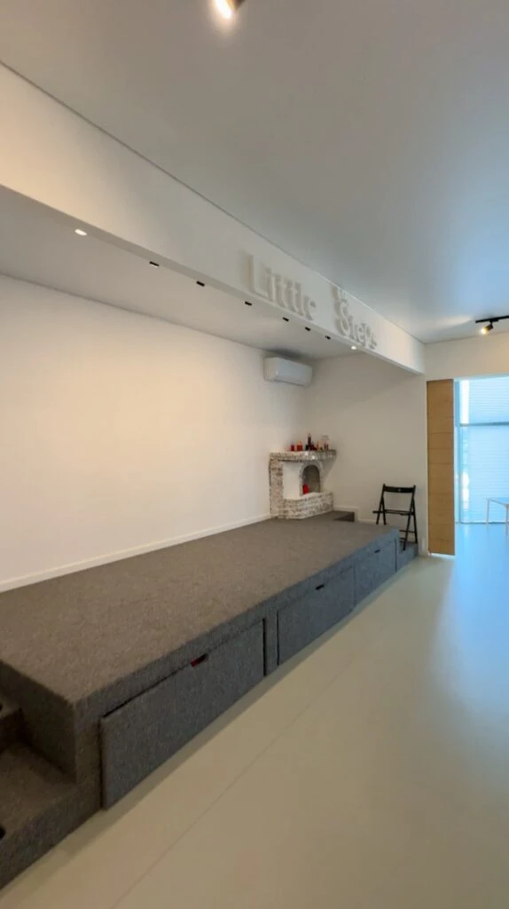 - welded a metal frame and built a small stage for children’s performances, covered with carpet;