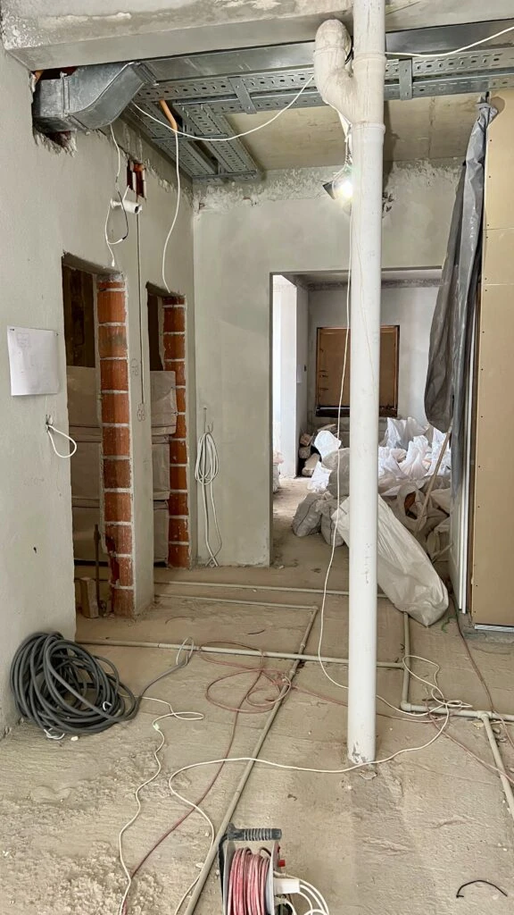 The starting point was a “shell & core” stage — bare walls, rough utilities, and unnecessary partitions. We carried out demolition, reinforced floor slabs where needed, and essentially started construction “from scratch.”