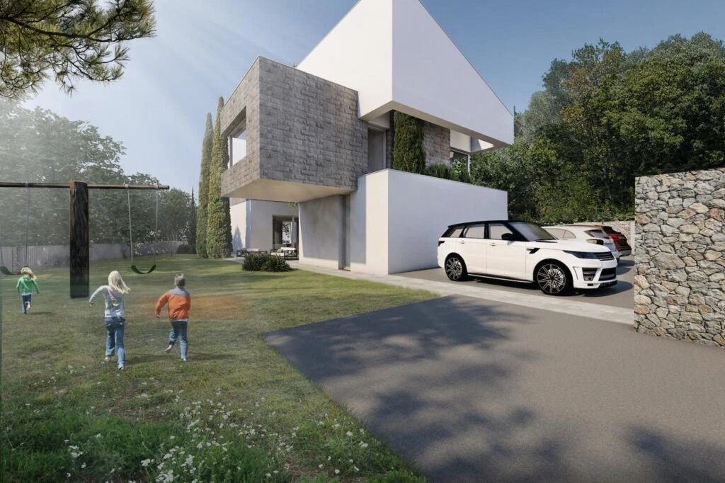 Swimming pool and parking spaces included in the design