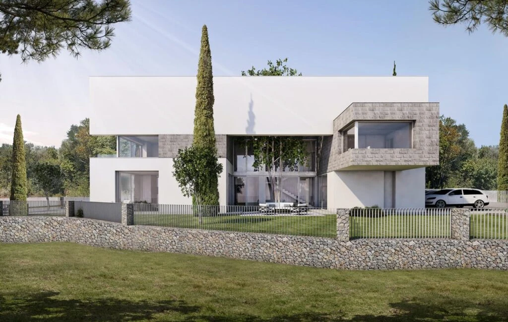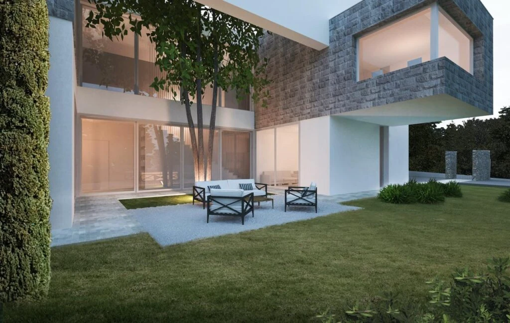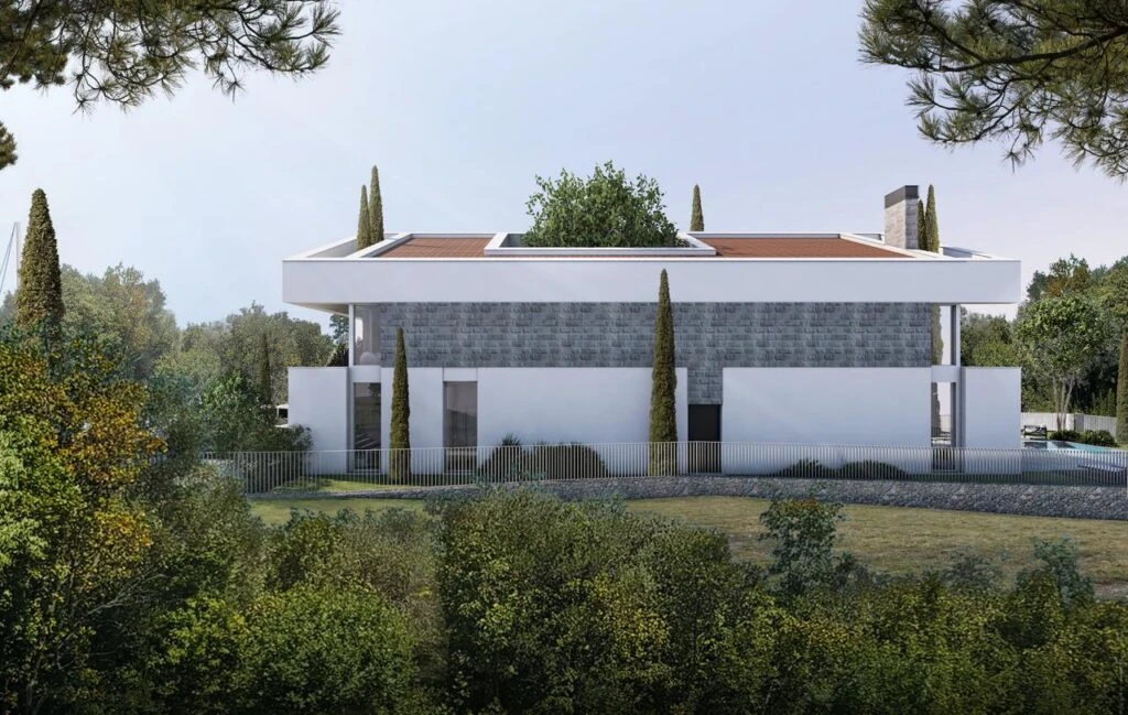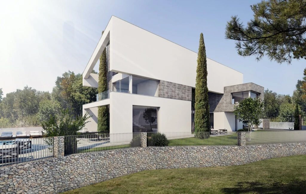 The architecture emphasizes harmony with nature: panoramic windows, green integration and landscape design.