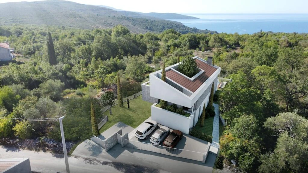 From the upper floors, sea views and the lush hills of the Luštica peninsula open up.