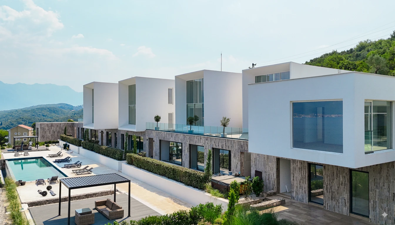 A contemporary boutique residence on the Lustica Peninsula, offering panoramic views of the Bay of Kotor, clean mountain air, and the comfort of a peaceful European setting.