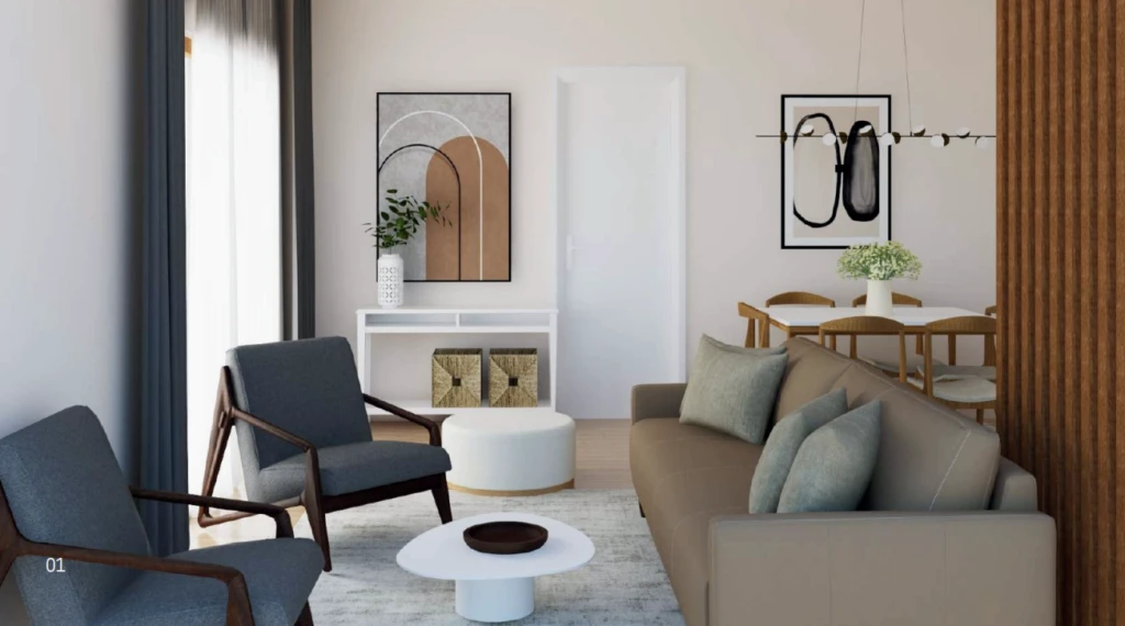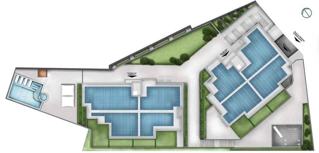 Оконные и дверные системы KBE 88 (Kömmerling) с акцентом на тепло- и шумоизоляцию. Тёплый пол, кондиционеры LG с удалённым smart-управлением, роллеты и москитные сетки. Террасы продуманы для ежедневного использования (включая вывод воды). В отдельных квартирах возможна установка фотоэлектрических панелей (3–5 kW) для большей энергонезависимости.