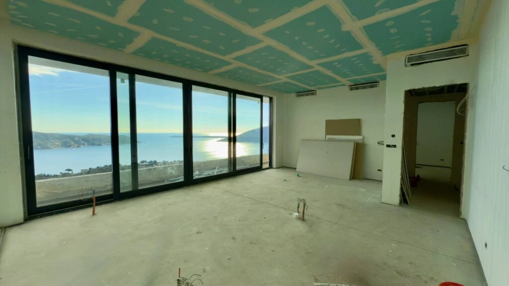 Классическая двухуровневая планировка с разделением дневной и ночной зон и панорамными видами на Адриатику с обоих уровней.